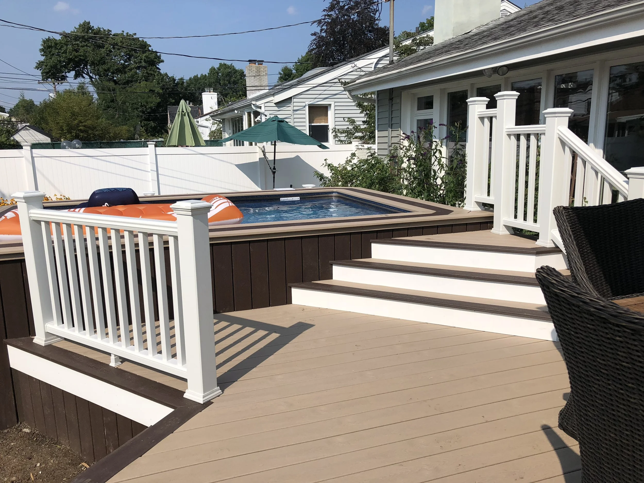 Our pool specialists will work with you to design the optimal structure with you for around your pool, which shapes come in the Round, Oval, Rectangle, or Freeform. If you've have pre-existing structures you're working with whether it be a deck, pavers, or even just a tight space, we will be able to guide you in the right direction. We've seen it all. Just give us an idea of what your needs are, and we will come up with the Right Pool at the Right Price for you and your family that will be enjoyed for years to come.